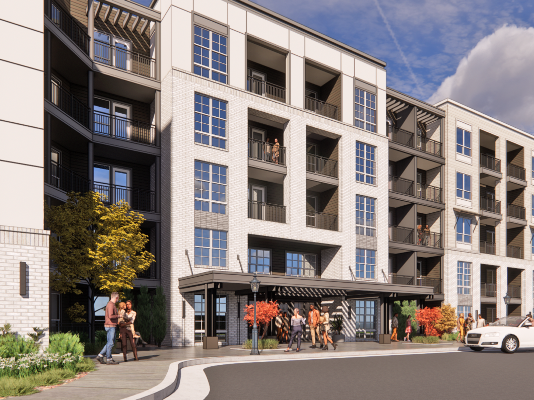 This new development includes a total of be 400 apartments spanning two buildings. The first includes 267 apartments in a conventional market rate building that is four stories of wood over a podium, wrapping a precast garage (the garage will be supported by micropiles), 133 apartments are in an active adult building that is